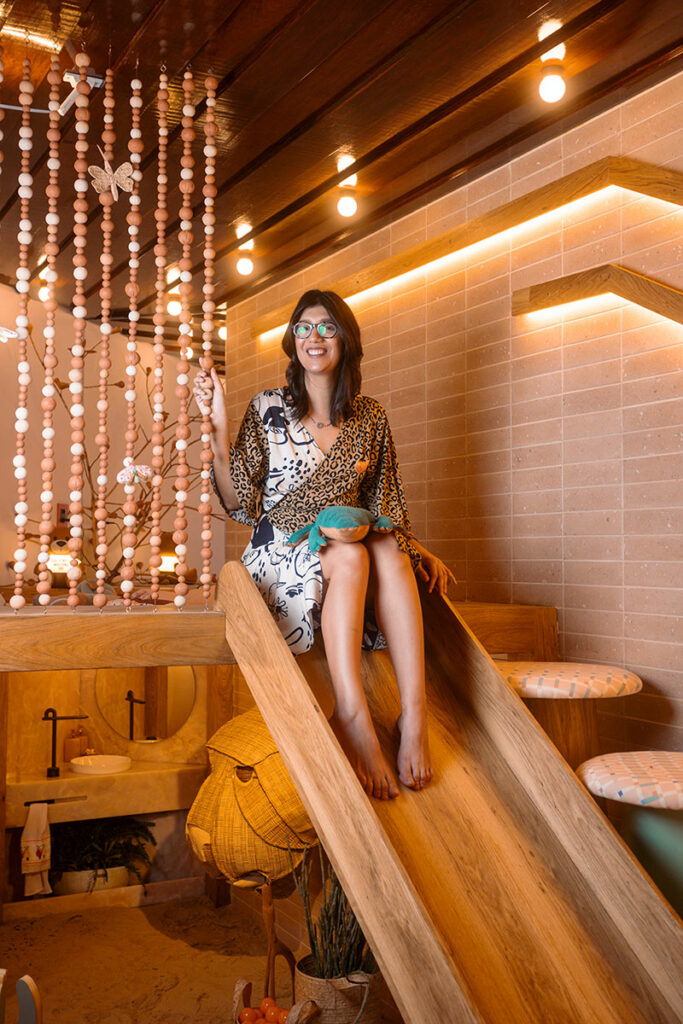 A Toca das Oncinhas, idealizada por Willane Soares, destaca-se por promover a conexão das crianças com elementos naturais e brinquedos analógicos, como madeira e tecido. “O espaço reflete a necessidade de conectar as crianças com a ancestralidade e incentivar a autonomia”, explica a arquiteta.